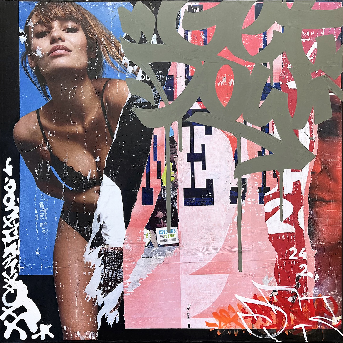 REALIZED: 2020-2026 TECHNIQUE: Mixte – Collage et Peinture acrylique DIMENSIONS: 100 x 100 x 4 cm CATEGORY: Billboards